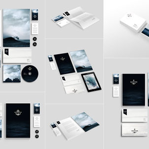 Examples of use: show instances of your logo, colours, and fonts applied to 5 basic collaterals, business card, letterhead, envelope, stickers and notebook or diary.
